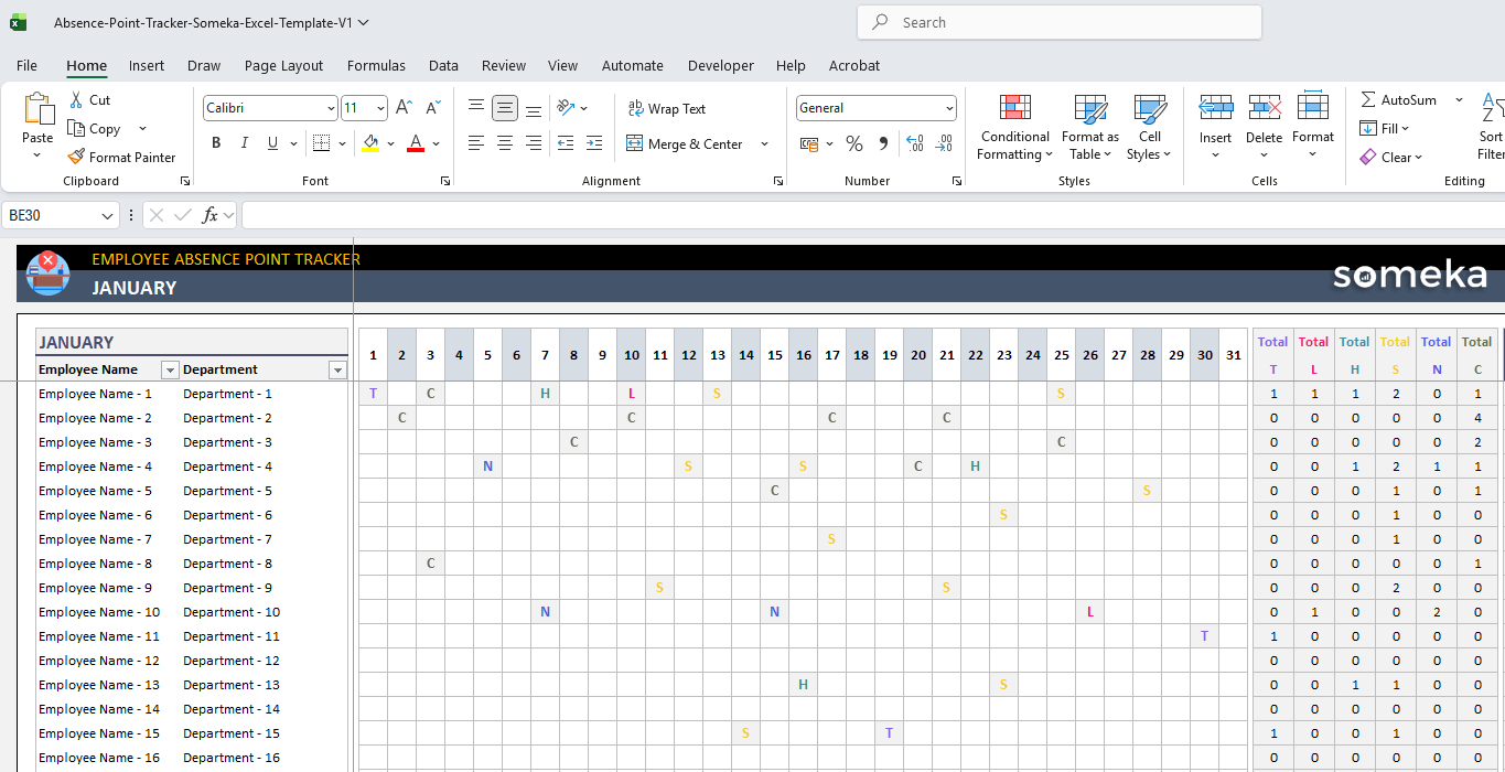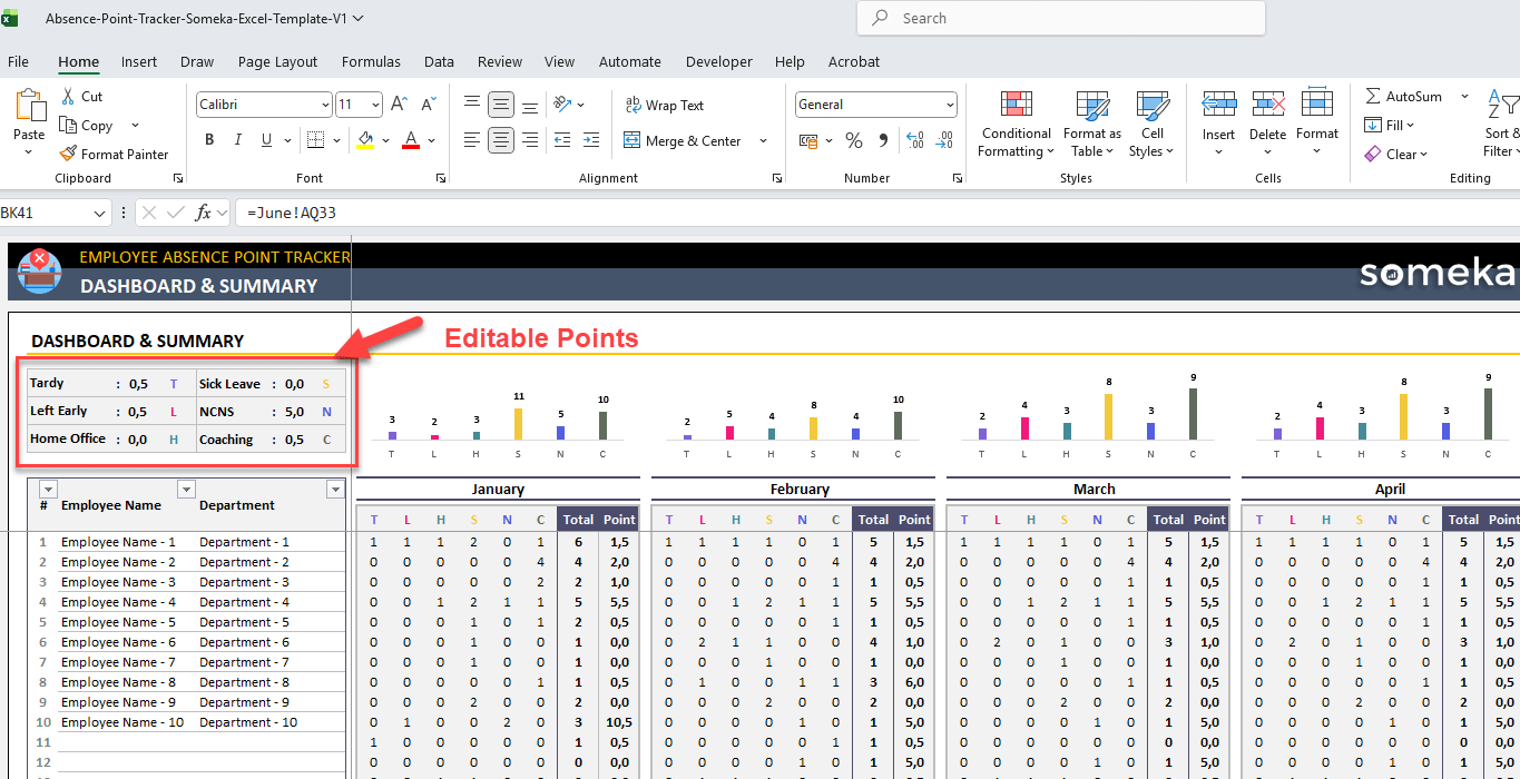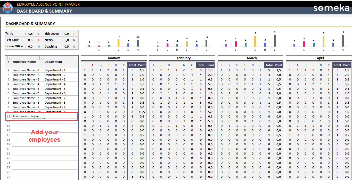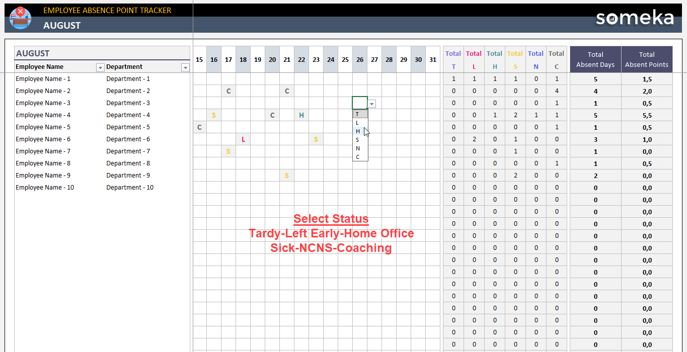 Alternatively, you can use Someka’s ready template for Absence Point Tracker. No need to build it from scratch.