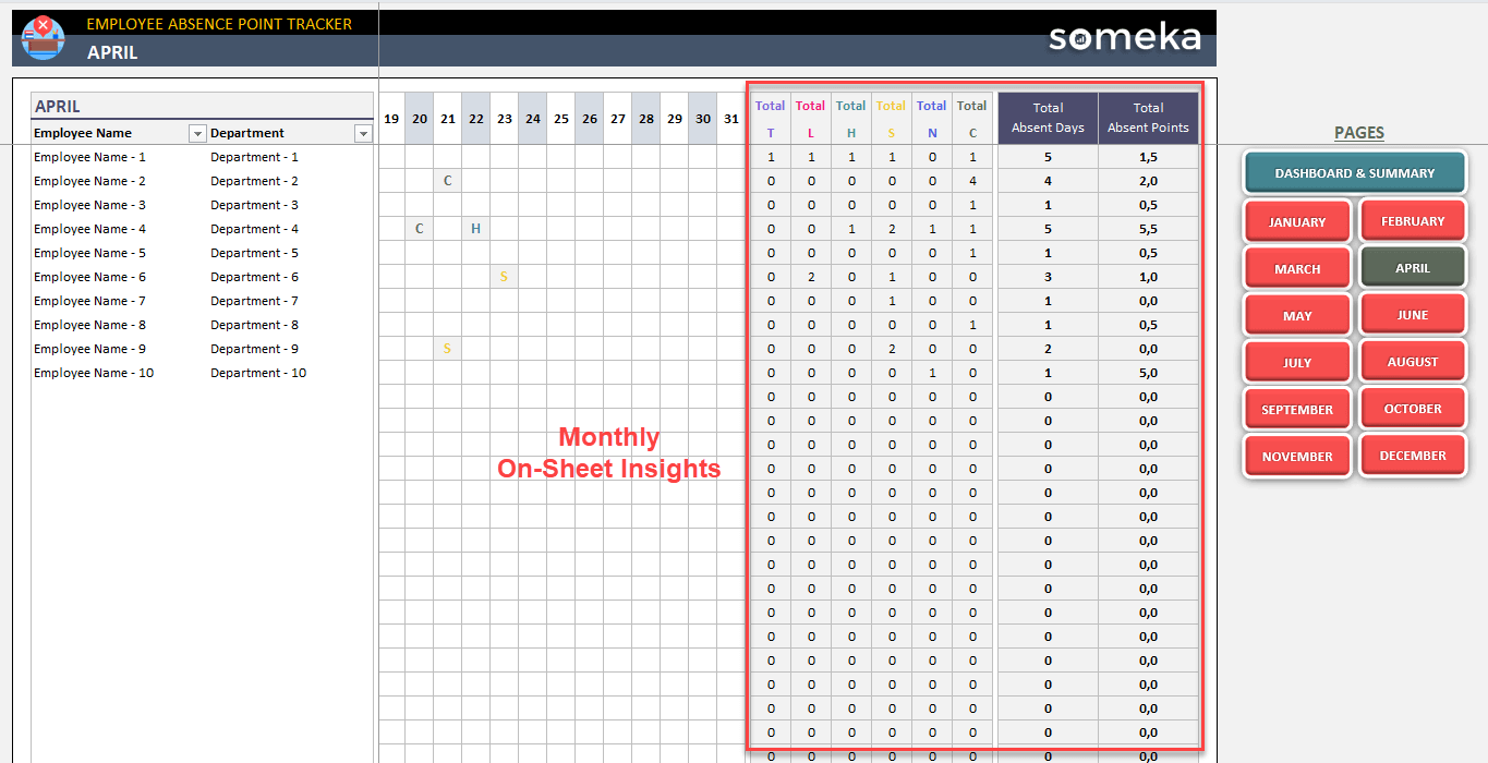 Then, you’ll be able to monitor monthly Totals for each different absence situation in addition to total absent days and absent points.