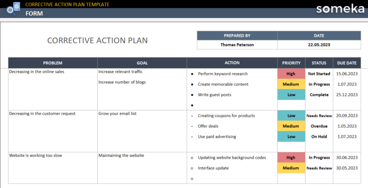 Are you looking for a way to improve your business but don’t know where to start? The most efficient way to improve your current business or project starts by dealing with deficiencies associated with your business so you can improve upon them. This is where the Corrective Action Plan template comes into play.